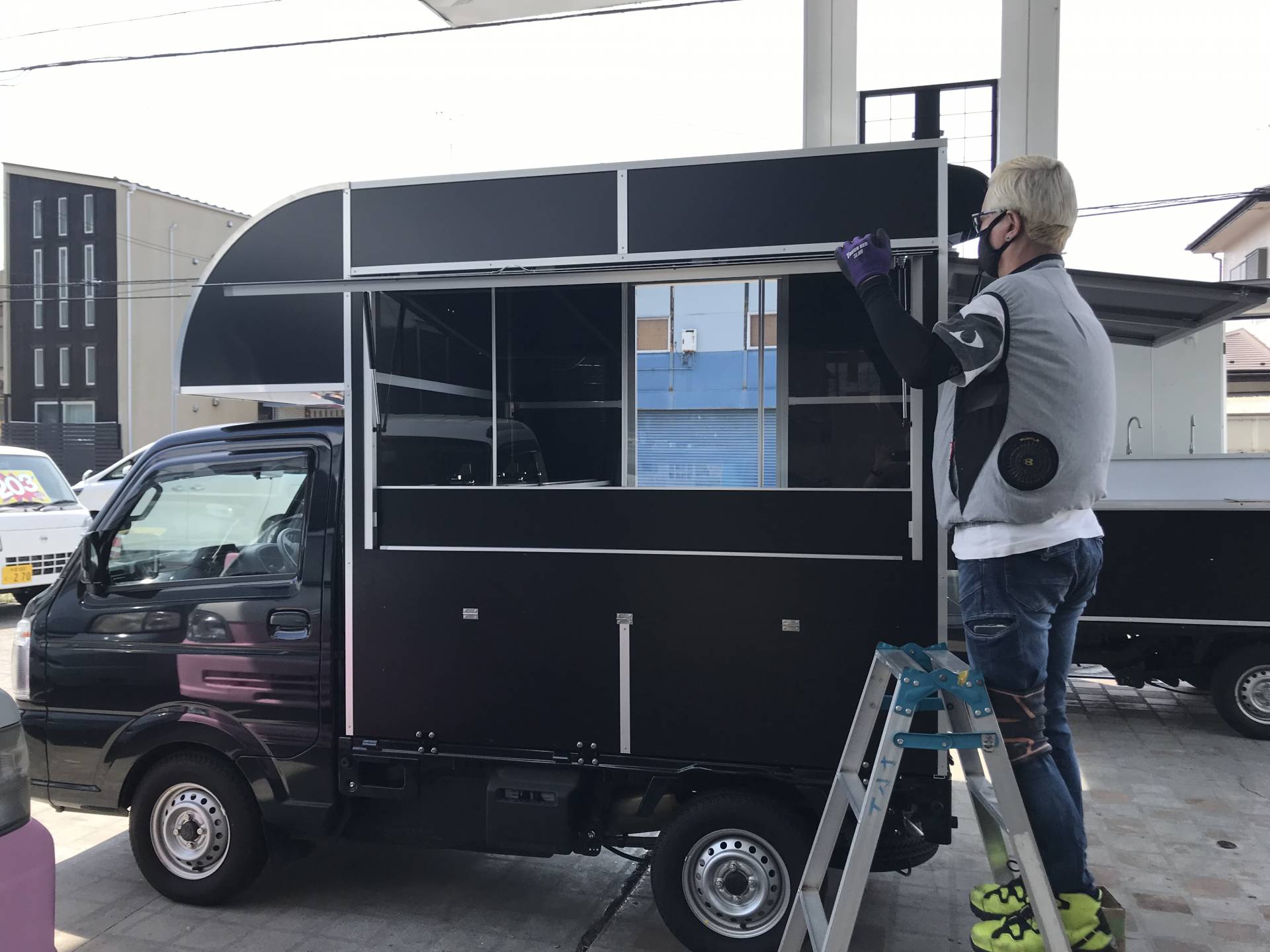 匠カスタムBOXの制作事例をご紹介します。 ハイサイカフェ様 2号車(キッチンカー:ステーキ丼) 山小屋風BOXで大人気!都内各所でランチ営業・イベント出店 …