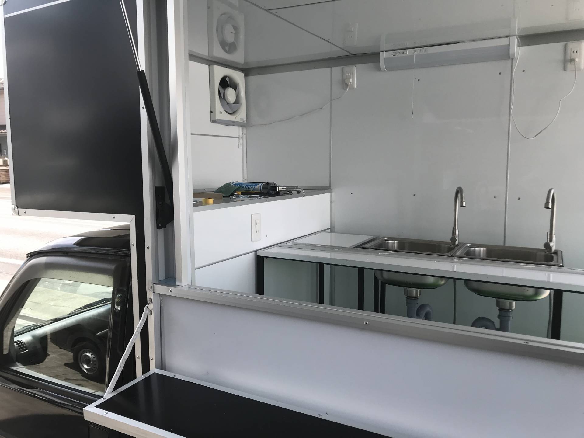 匠カスタムBOXの制作事例のご紹介 AQUA様(キッチンカー:タコライス、アメリカンロコモコ) オリジナル色の車塗装&ラッピングBOXでアピール!ドン・キホ …